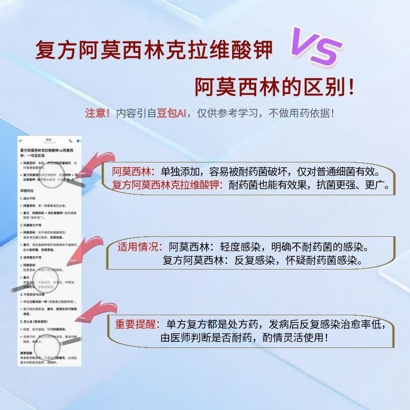 - 主要成分:阿莫西林,克拉维酸钾