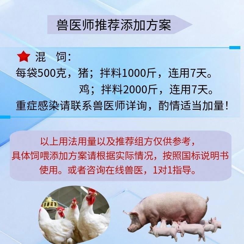 - 商品名称:【宜生源】20%酒石酸泰万菌素预混剂500g 大包装拌料1千斤蓝耳圆环母猪净化呼吸道咳喘支原体回肠炎