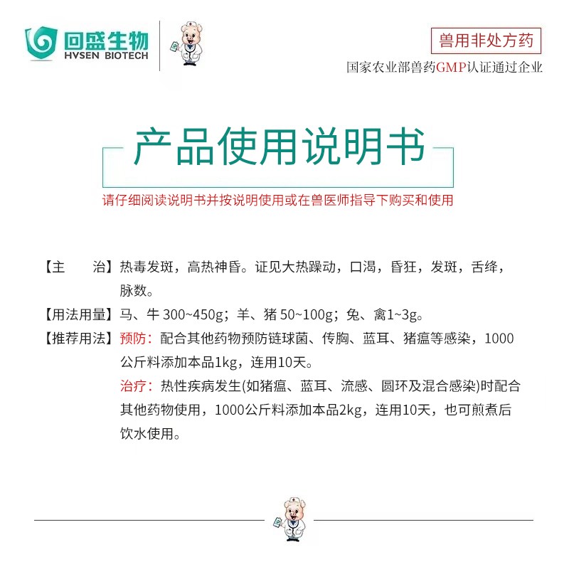 - 商品名称:【鼎合牧高】回盛清瘟败毒散500g 泻火解毒,凉血,热毒发斑,高热神昏原猪易自营