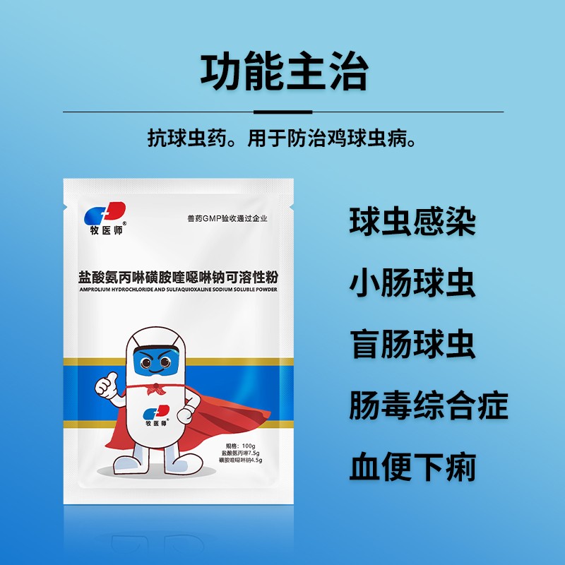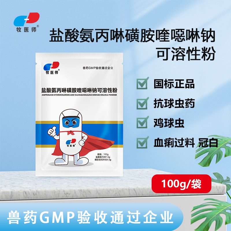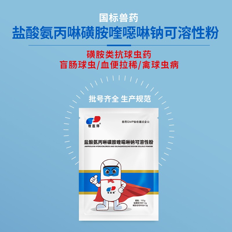 商品名称:兽用盐酸氨丙啉磺胺喹噁啉钠可溶性粉球虫鸡鸭鹅兔球虫病国标正品 商品编号:ZHUEJPH0007617918 品牌:牧医师 上架时间:2024-06-24 商品净重:100克 产品批文号:兽药字161316046