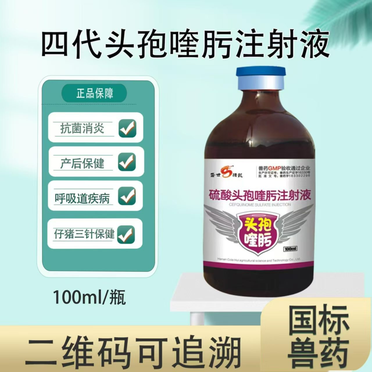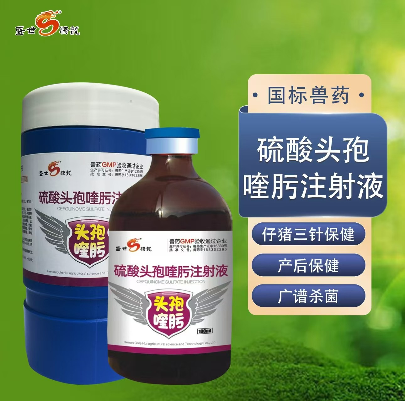 商品名称:【盛世腾龙】硫酸头孢喹肟注射液100ml 四代头孢混悬液仔猪保健母猪产后消炎 商品编号:ZHUEJPH0007217951 品牌:盛世腾龙 上架时间:2024-07-05 商品净重:200克 产品批文号:兽药字163302296