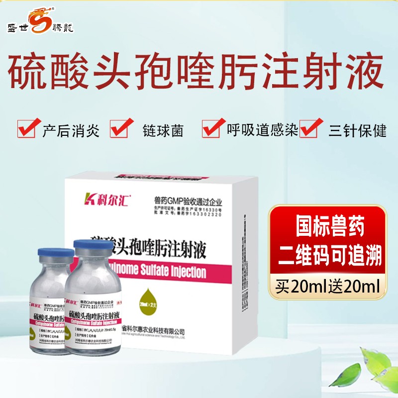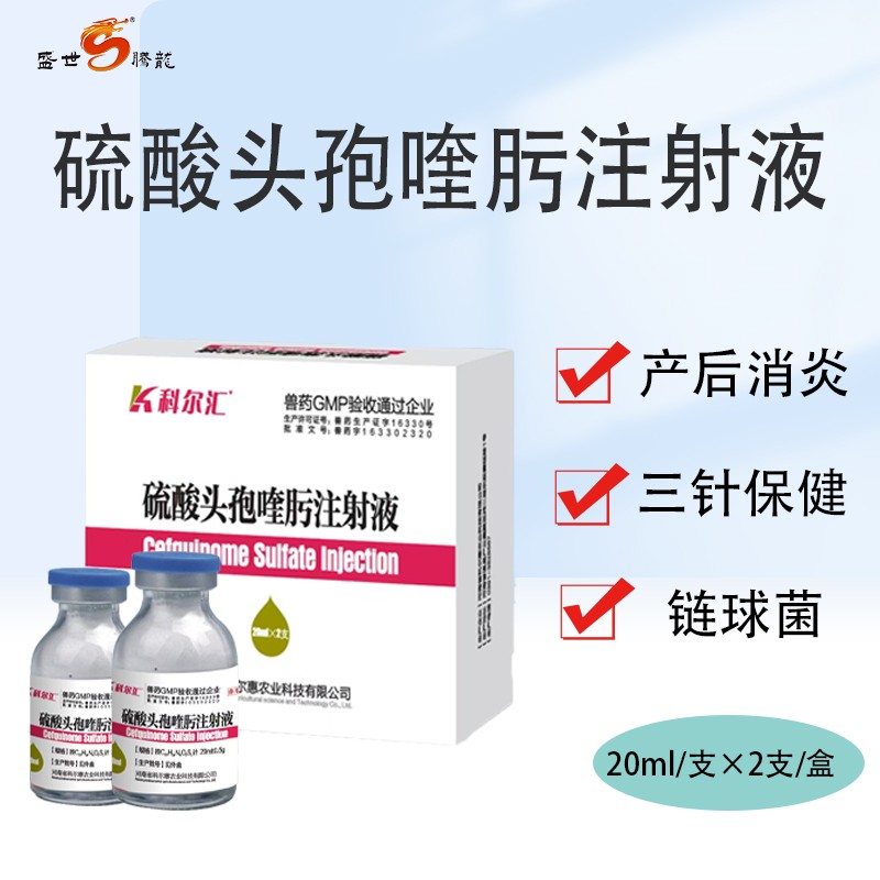 商品名称:【盛世腾龙】硫酸头孢喹肟注射液四代头孢20ml/瓶2瓶/盒母猪产后消炎仔猪三针保健抗菌消炎 商品编号:ZHUEJPH0009018053 品牌:科尔汇 上架时间:2024-08-19 商品净重:100克 产品批文号:兽药字号163302320