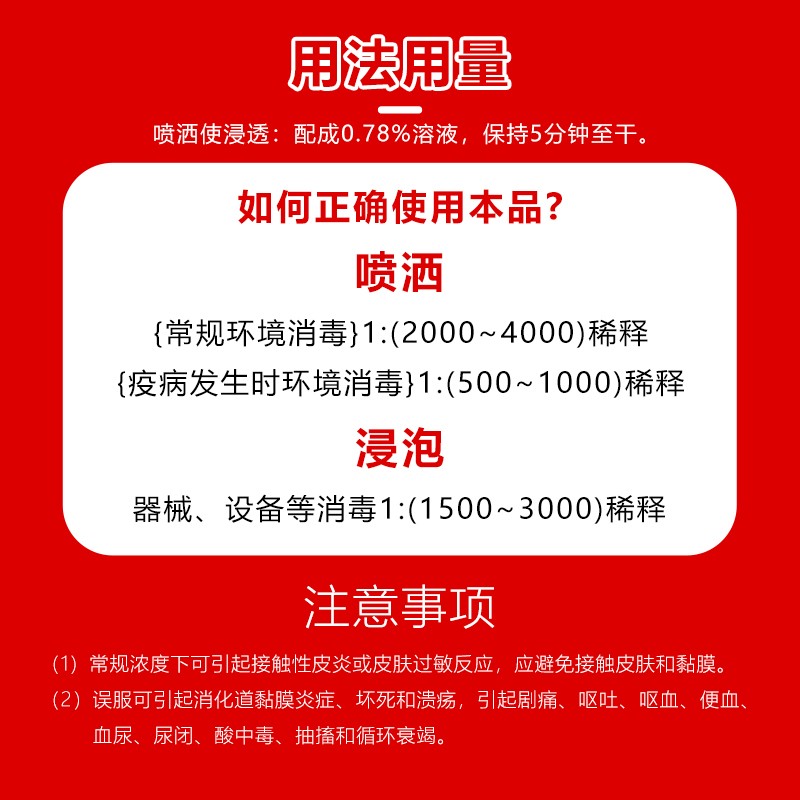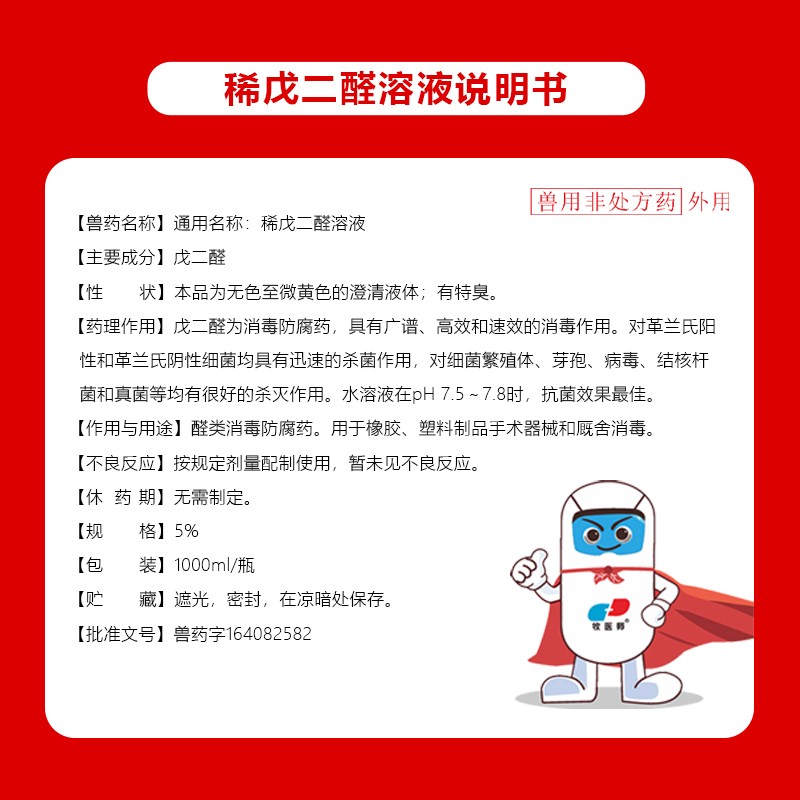 商品名称:【牧医师】稀戊二醛猪圈猪场消毒剂兽用养殖场专用 商品编号:ZHUEJPH0009318147 品牌:牧医师 上架时间:2024-10-17 商品净重:1.000千克 产品批文号:兽药字164082582
