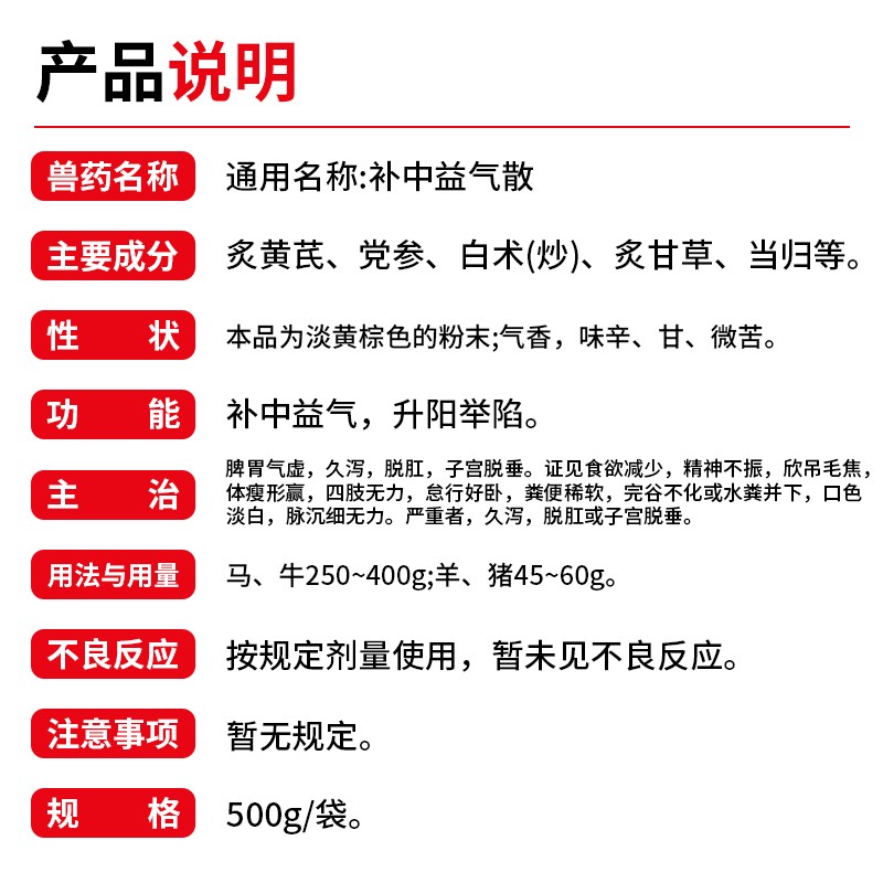 - 商品名称:【开扬】补中益气散500g/袋 补中益气 脾胃气虚,久泻,脱肛,子宫脱垂 升阳举陷 补中益气500散