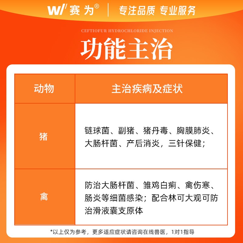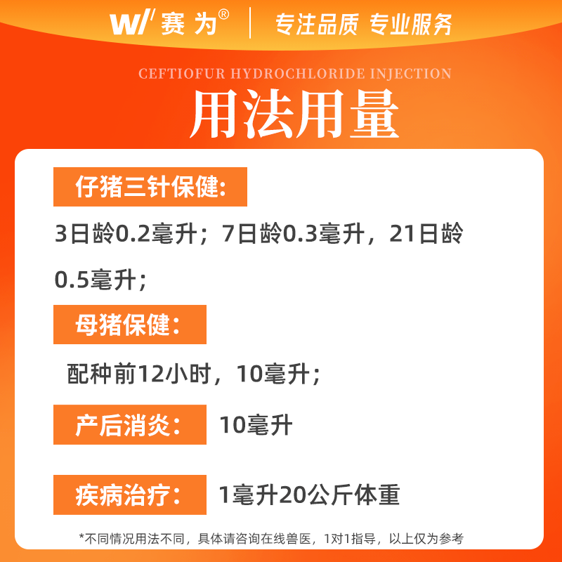 - 商品名称:【赛为】三代头孢 10%长效盐酸头孢噻呋混悬液注射液100ml仔猪三针保健母猪产后消炎