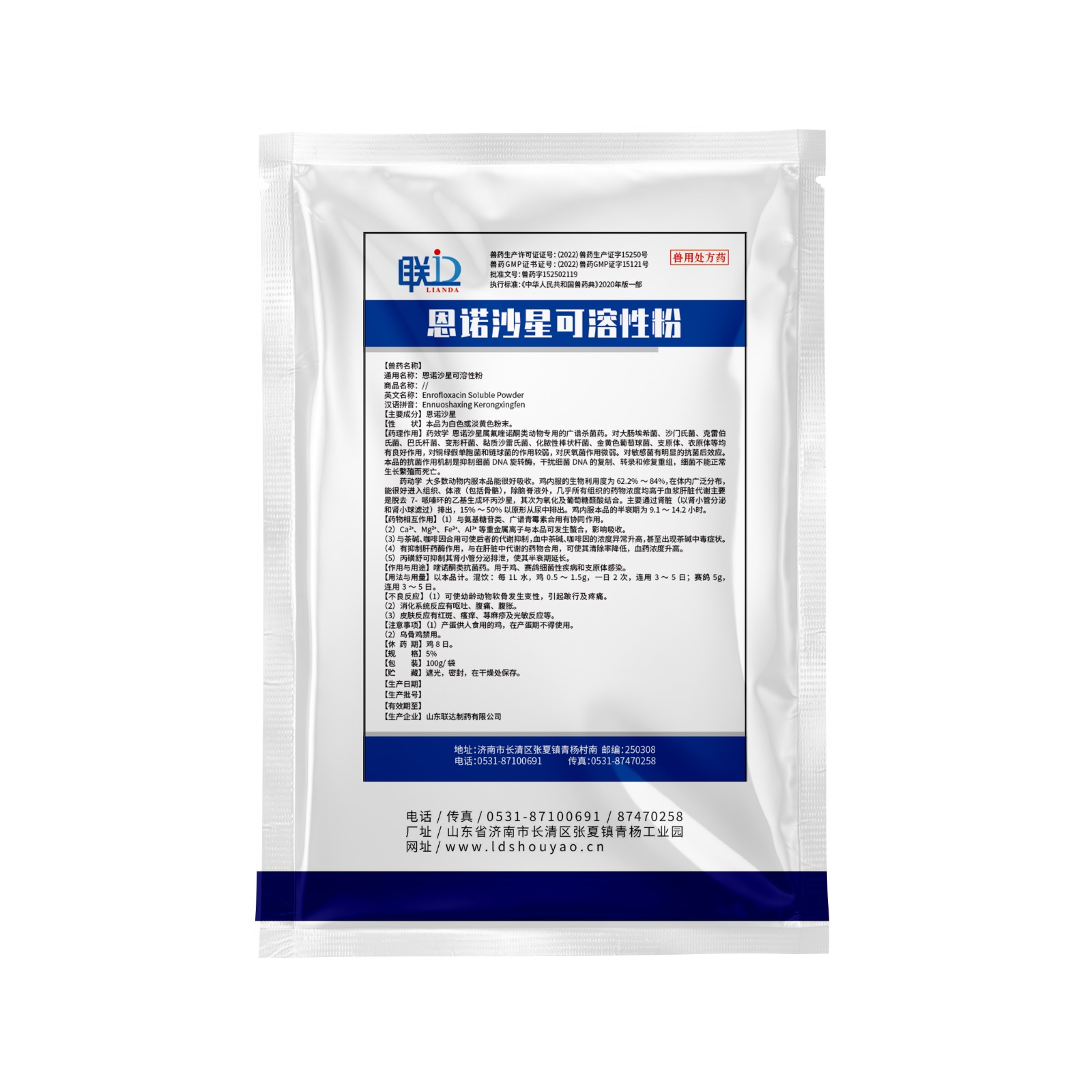 - 商品名称:【联达】5%恩诺沙星可溶性粉 腹泻支原体黄白痢肠炎拉稀