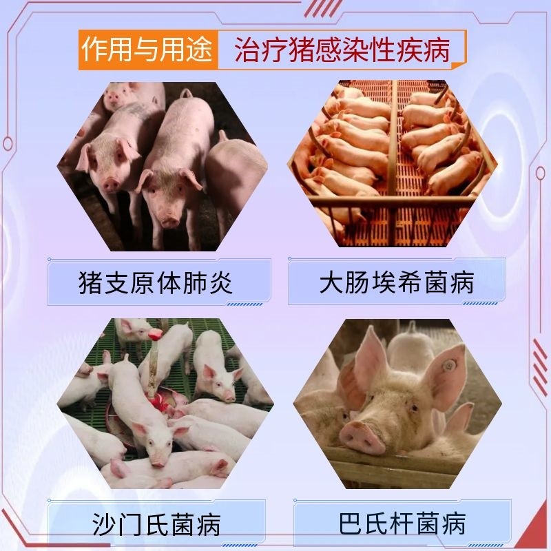 - 使用方法:肌内注射:一次量,每1kg体重,猪0.1~0.2ml,一日1次,连用2~3日。