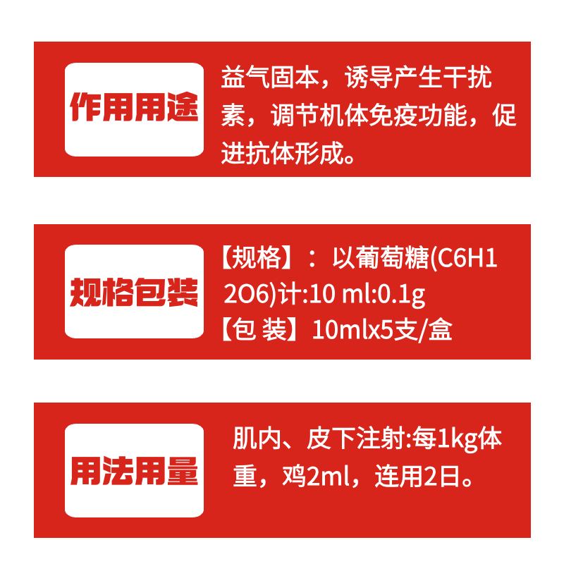 - 商品名称:【牧之晨】黄芪多糖注射液10ml*5支/盒 益气固体,诱导产生干扰素,调节机体免疫功能,促进抗体形成