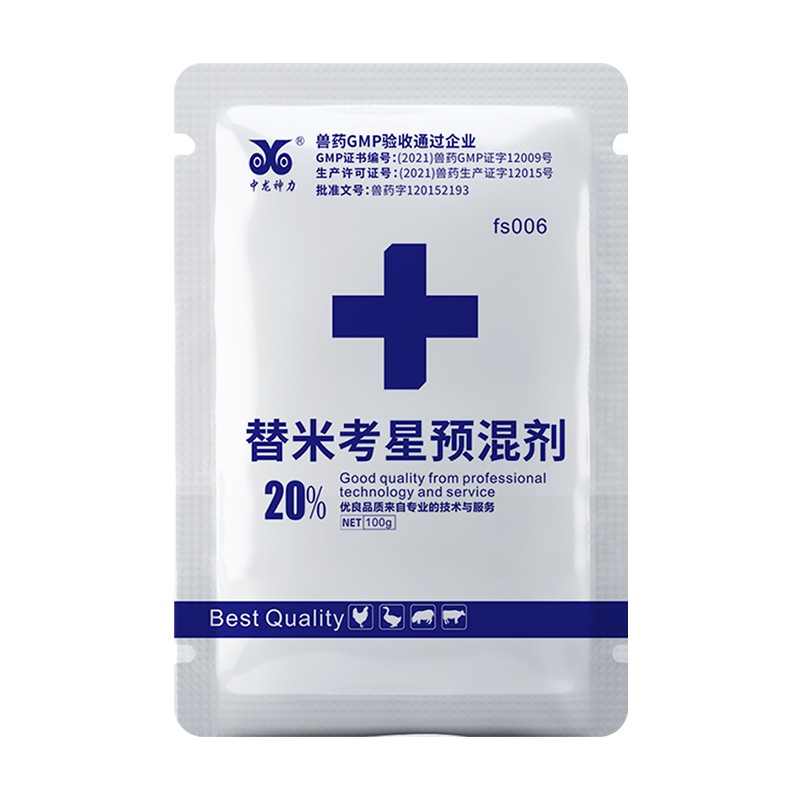 商品名称:【中龙神力】20%替米考星预混剂 兽药支原体感染 胸膜肺炎 巴氏杆菌 商品编号:fs006 品牌:中龙神力 上架时间:2025-03-13 商品净重:100克 产品批文号:兽药字120152193