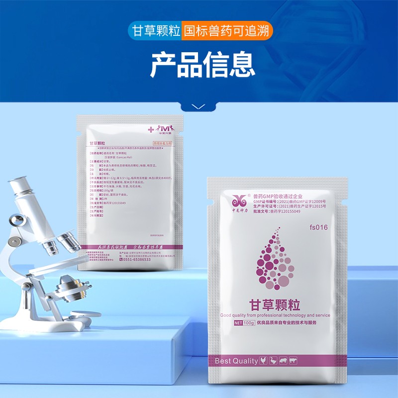 商品名称:【中龙神力】甘草颗粒 国标 兽用中兽药,化痰止咳、消除炎症 商品编号:fs016 品牌:中龙神力 上架时间:2025-03-13 商品净重:100克 产品批文号:兽药字120155049