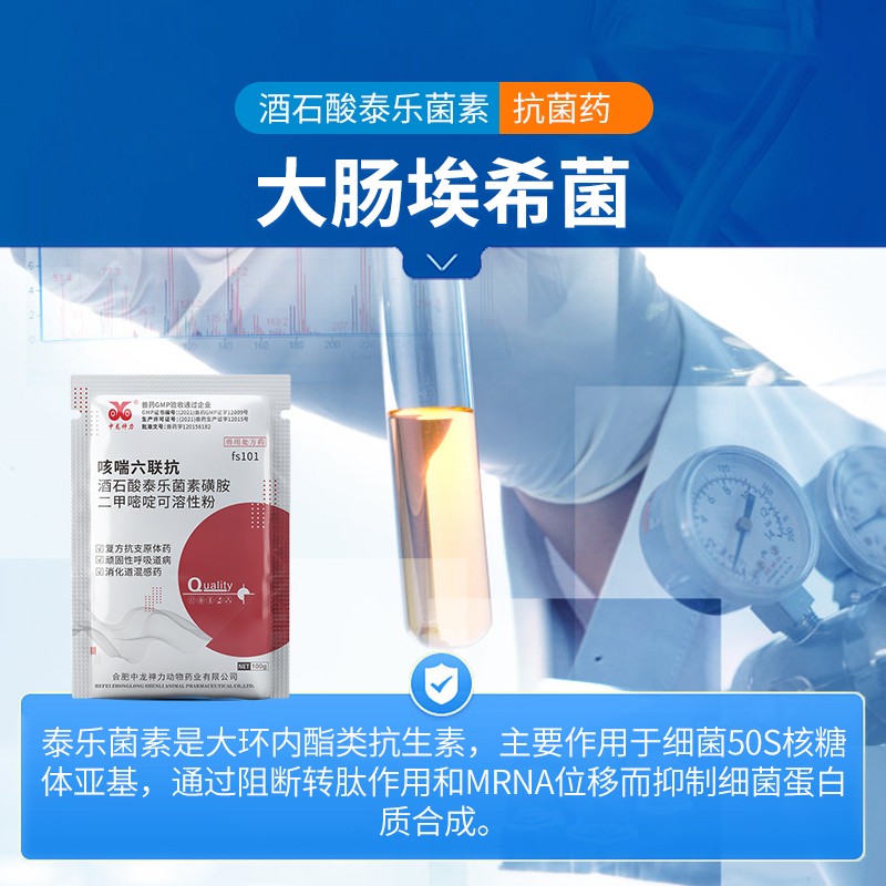 商品名称:【中龙神力】酒石酸泰乐菌素磺胺二甲嘧啶可溶性粉兽用支原体呼吸道猪感冒药100g/袋 商品编号:fs101 品牌:中龙神力 上架时间:2025-03-17 商品净重:100克 产品批文号:兽药字120156182