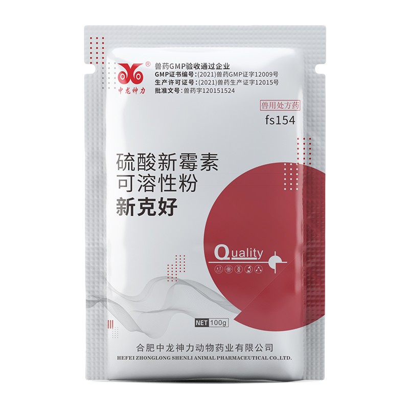 商品名称:【中龙神力】32.5%硫酸新霉素可溶性粉兽药猪鸡鸭鹅肠炎腹泻拉稀兽用 商品编号:fs154 品牌:中龙神力 上架时间:2025-03-18 商品净重:100克 产品批文号:兽药字120151523