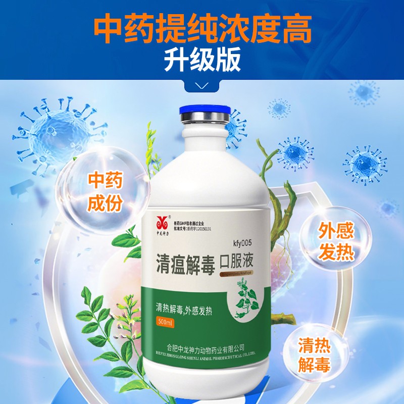 商品名称:【中龙神力】清瘟解毒口服液抗病毒治疗新城疫纯中草药猪药 商品编号:kfy005 品牌:中龙神力 上架时间:2025-03-20 商品净重:600克 产品批文号:兽药字120156131