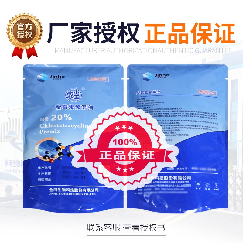 商品名称:【金河生物】20%金霉素预混剂1kg/袋 原装正品 商品编号:金 品牌:赛为 上架时间:2025-03-20 商品净重:1.000千克 是否包被:否 是否水溶:否 包装规格:包 产品批文号:兽药字050084652