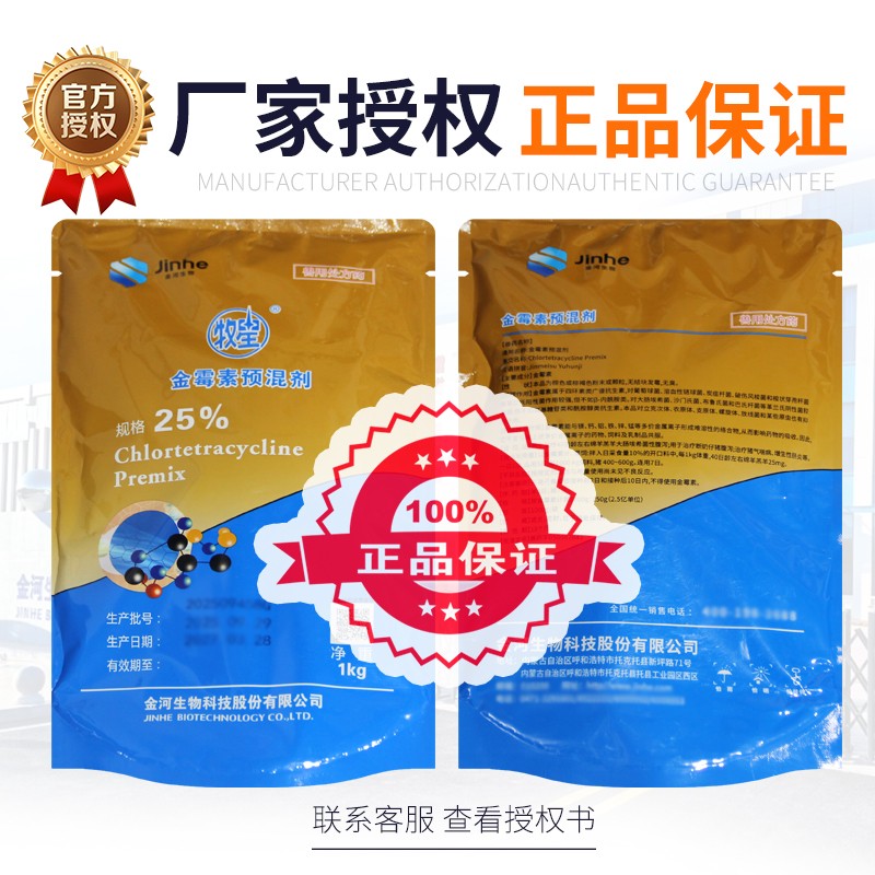 商品名称:【金河生物】25%金霉素预混剂1kg/袋 原装正品 商品编号:ZHUEJPH0009418467 品牌:赛为 上架时间:2025-03-20 商品净重:1.000千克 产品批文号:兽药字050082843