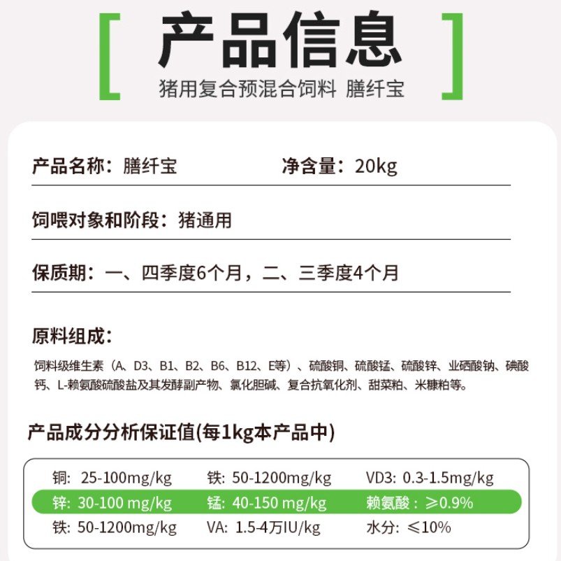 - 商品名称:【新希望六和】膳纤宝 猪用复合预混合饲料猪全阶段可用补充膳食纤维强壮机体靓丽皮毛提高生产效率
