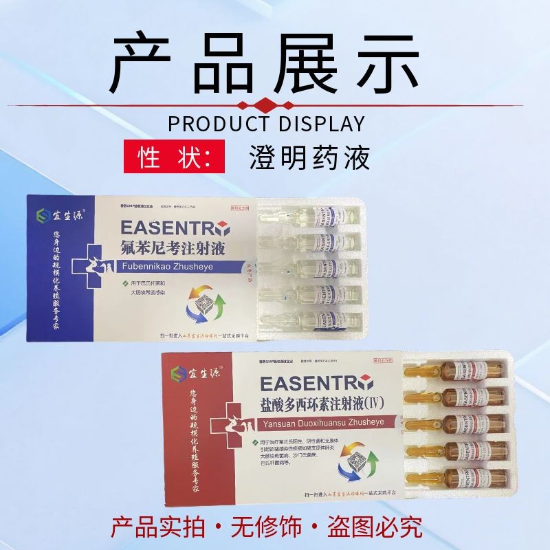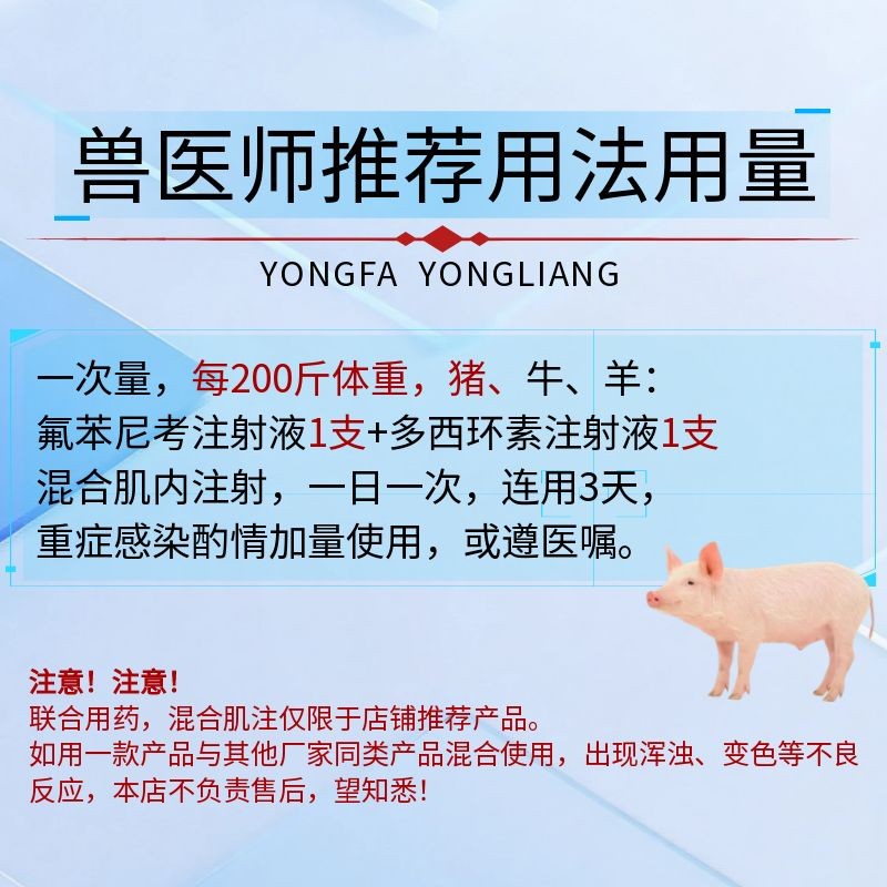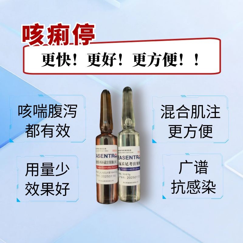 商品名称:【宜生源】咳痢停 氟苯尼考注射液+多西环素注射液咳嗽气喘呼吸道感染腹泻下痢断奶仔猪混感支原体肺炎肠炎 商品编号:ZHUEJPH0008118487 上架时间:2025-04-07 商品净重:400克 主要成分:氟苯尼考+多西环素 保质期:24个月 储存方法:避光干燥通风 使用方法:肌肉注射 生产厂家:鸢城