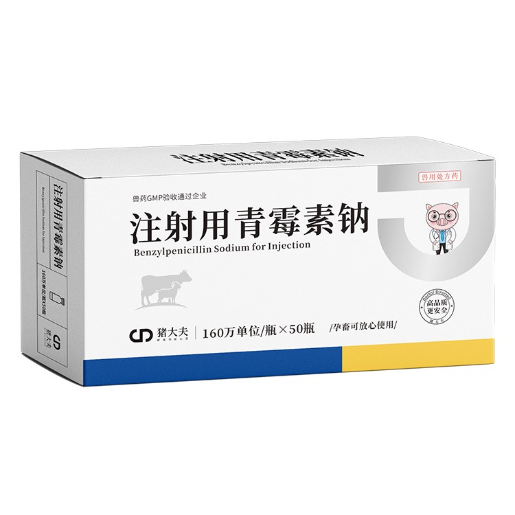 商品名称:【猪大夫】160万单位注射用青霉素钠 兽用 猪马牛羊鸡鸭猫狗消炎 商品编号:ZHUEJPH0009618505 品牌:猪大夫 上架时间:2025-05-06 商品净重:500克 主要成分:青霉素钠 产品性状:白色结晶性粉末 保质期:24个月 整件规格:20盒/箱 产品批文号:兽药字221662659