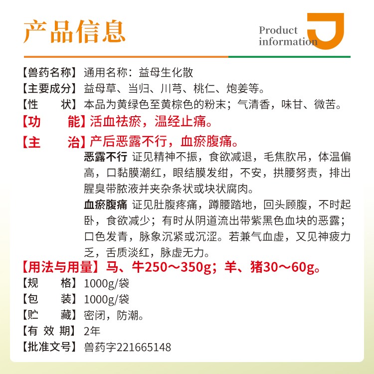 - 商品名称:【猪大夫】益母生化散1kg 兽用 猪牛羊保健产后不发情母畜保健