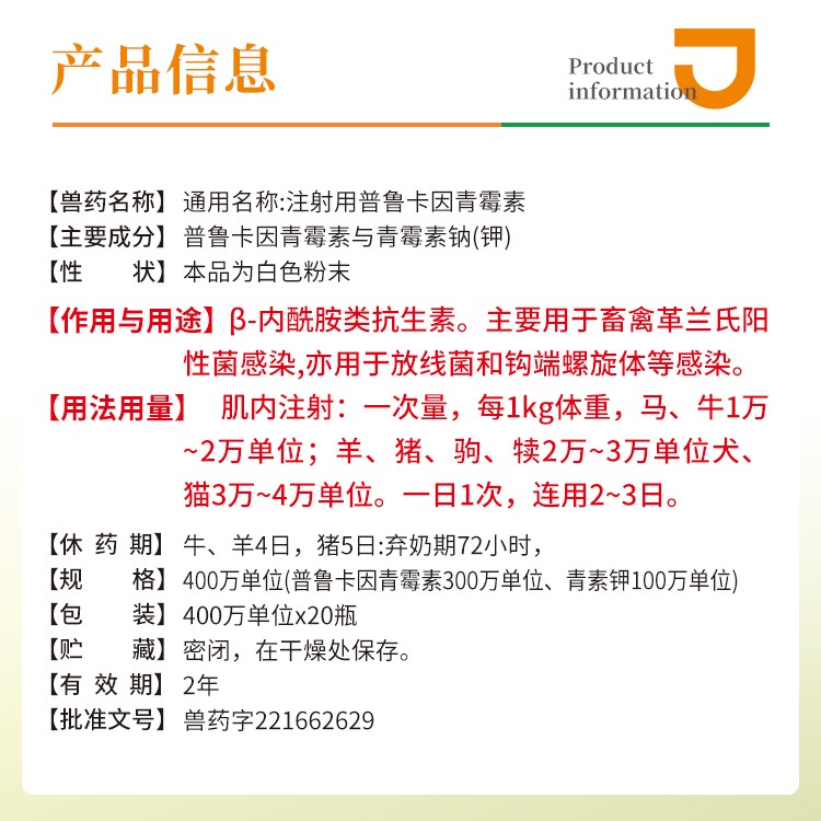 - 商品名称:【猪大夫】注射用普鲁卡因青霉素400万单位 兽用 猪马牛羊放线菌