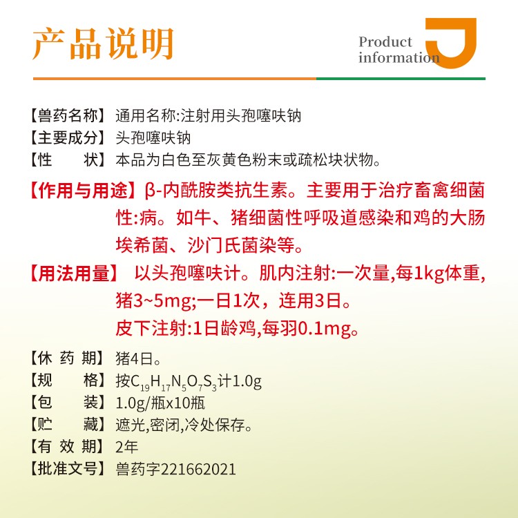 - 商品名称:【猪大夫】1g注射用头孢噻呋钠 兽用 畜禽呼吸道感染胸膜肺炎