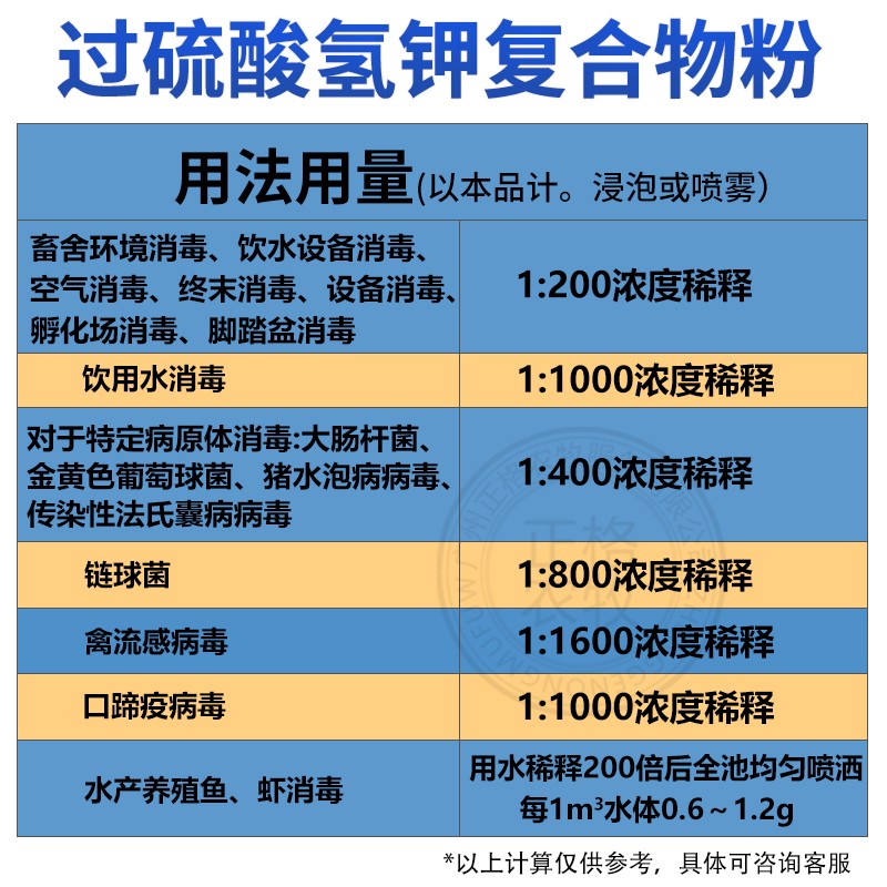 - 主要成分:50%过硫酸氢钾、10%聚维酮碘