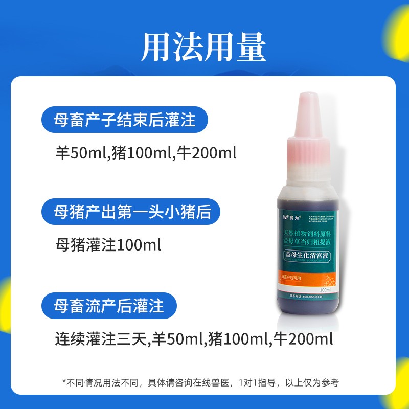 商品名称:【赛为】益母生化清宫液100ml*10瓶益母草当归粗提液母猪产后子宫冲洗产后康 商品编号:ZHUEJPH0003218526 品牌:赛为 上架时间:2025-05-13 商品净重:100克