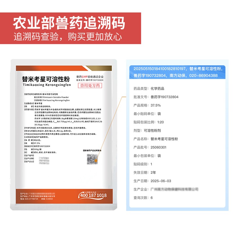 - 商品名称:【正格农牧】育隆37.5%替米考星可溶性粉禽药呼吸道支原体感染兽药鸡鸭咳嗽气喘兽药