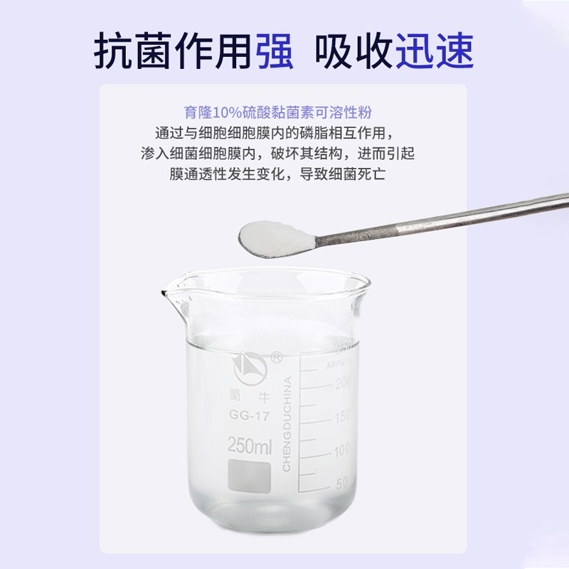 - 商品名称:【正格农牧】育隆10%硫酸黏菌素可溶性粉兽用鸡鸭鹅肠炎黄白痢猪牛羊拉稀粘杆菌素兽药