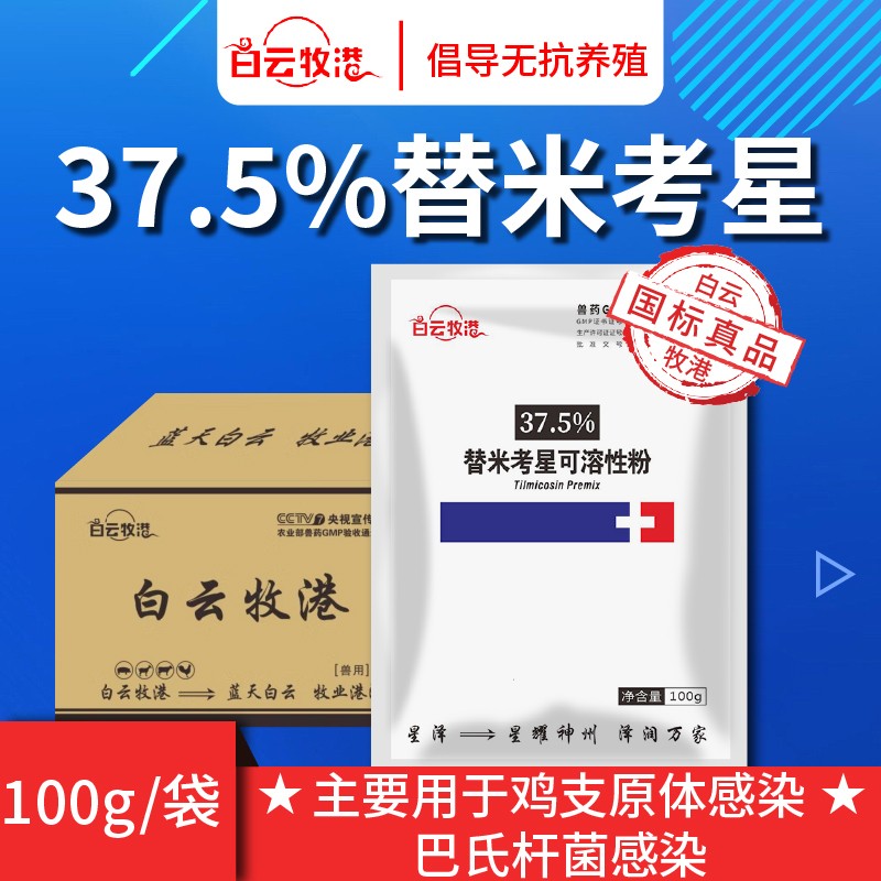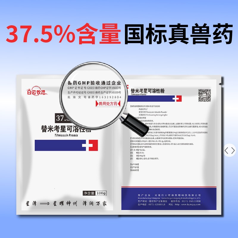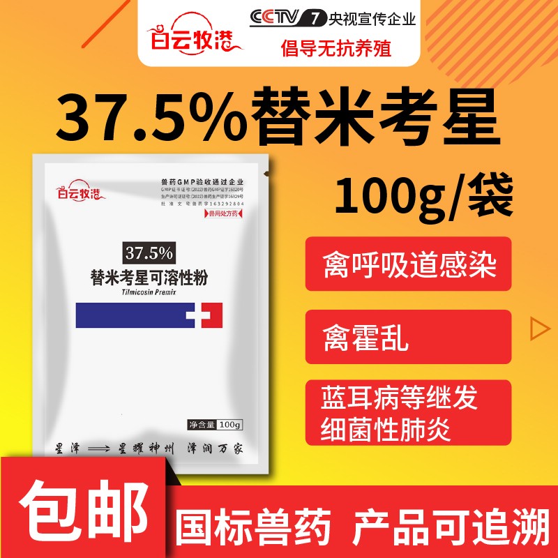 - 商品名称:【白云牧港】 兽药37.5%替米考星可溶性粉 猪牛羊药鸡药禽药 兽用呼吸道药蓝耳喘气