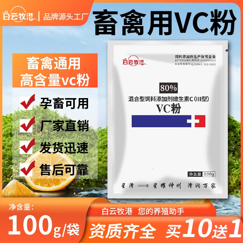 商品名称:【白云牧港】兽用80%VC维生素C可溶性粉VC粉增强免疫j解暑降温微量元素禽用维生素 商品编号:ZHUEJPH0004618560 品牌:白云牧港 上架时间:2025-07-11 商品净重:100克
