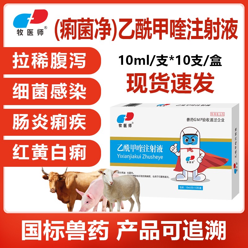 商品名称:牧医师乙酰甲喹注射液猪牛羊肠炎腹泻黄白痢疾仔猪拉稀抗菌消炎 商品编号:ZHUEJPH0003818597 品牌:牧医师 上架时间:2025-08-07 商品净重:185克 产品批文号:兽药字161724645