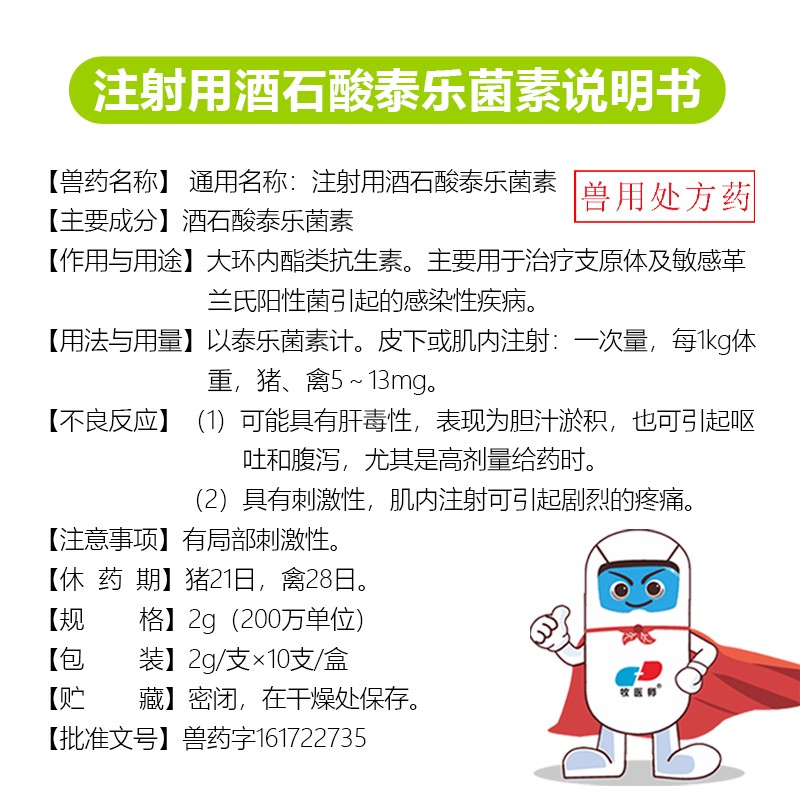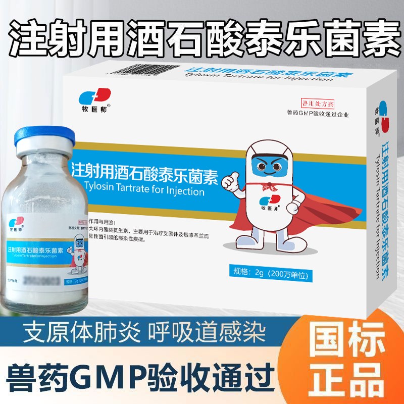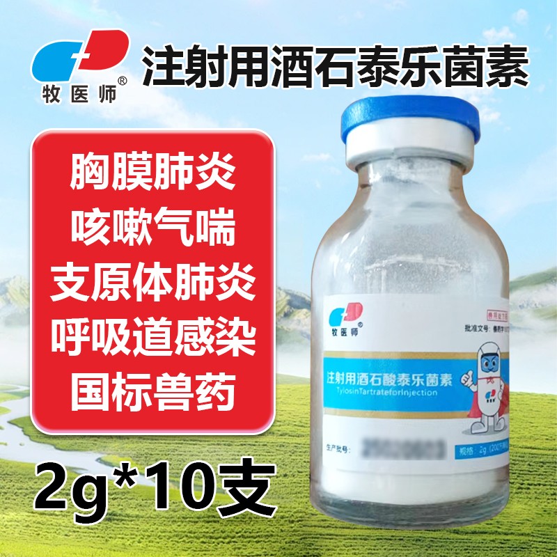 商品名称:兽用注射用酒石酸泰乐菌素畜禽通用咳嗽气喘肺炎呼吸道病 商品编号:ZHUEJPH0008218599 品牌:牧医师 上架时间:2025-08-18 商品净重:2克 产品批文号:兽药字161722735