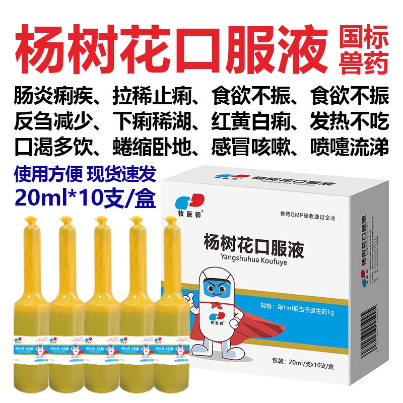 商品名称:杨树花口服液兽用牛羊拉稀止痢肠炎口服中药 商品编号:ZHUEJPH000518602 品牌:牧医师 上架时间:2025-08-18 商品净重:20克 产品批文号:兽药字161725077