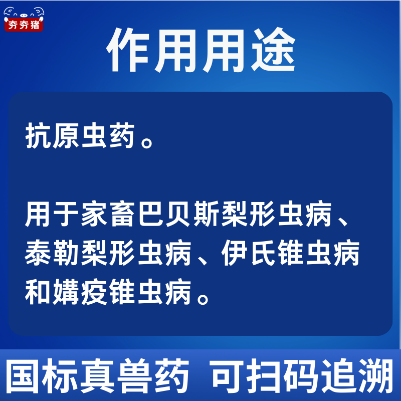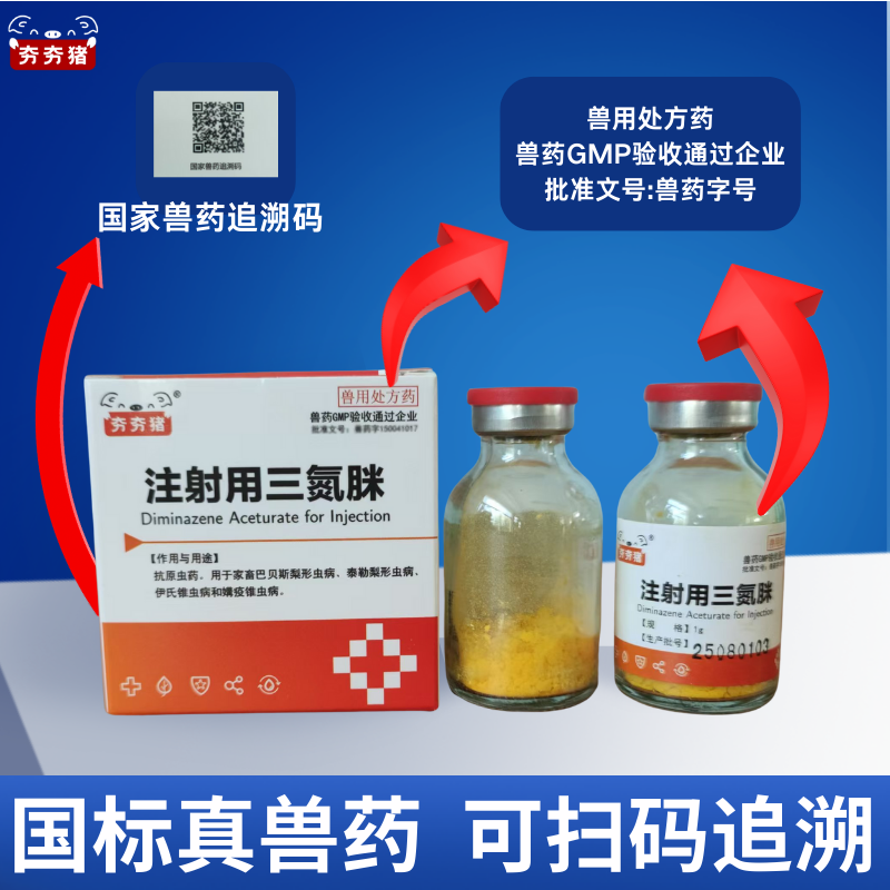 - 商品名称:【夯夯猪】1g*10支 注射用三氮脒 国标兽药 猪牛羊马用 抗原虫 巴贝斯梨形虫 伊氏锥虫 血虫