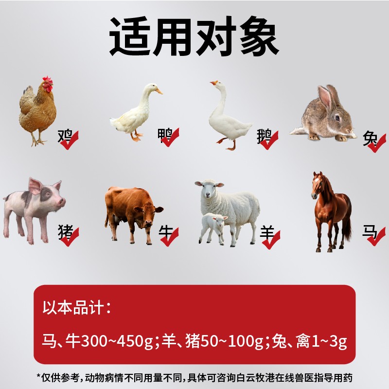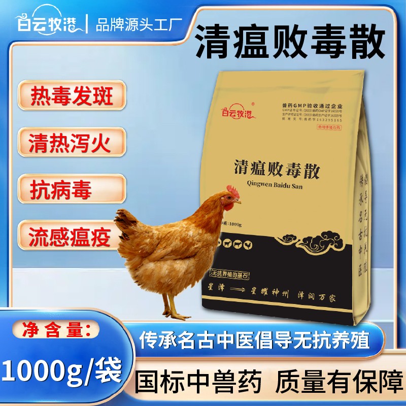 商品名称:【白云牧港】兽用清瘟败毒散猪牛羊鸡鸭鹅用清温清热泻火抗病毒兽药 商品编号:ZHUEJPH0002318651 品牌:白云牧港 上架时间:2025-09-10 商品净重:1.000千克 产品批文号:兽药字163295165
