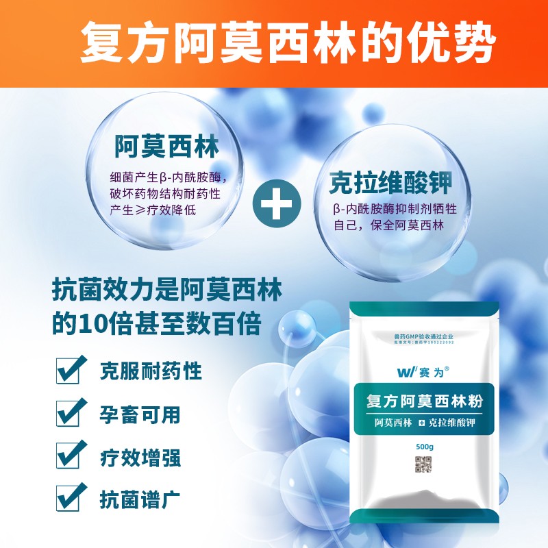 - 商品名称:【赛为】复方阿莫西林粉克拉维酸钾500g复方多效猪丹毒链球菌广谱消炎