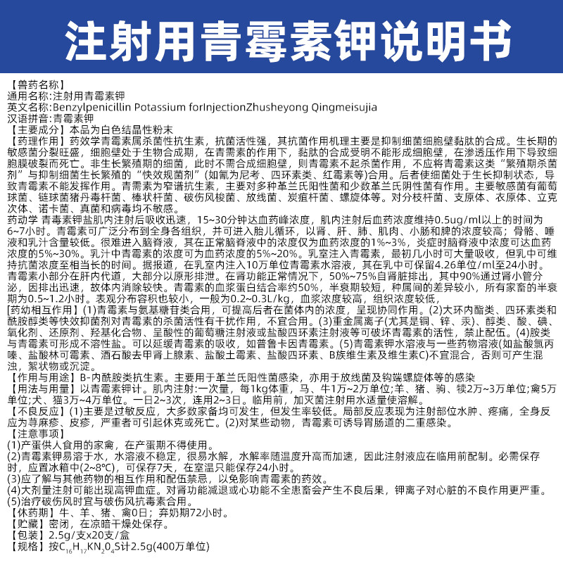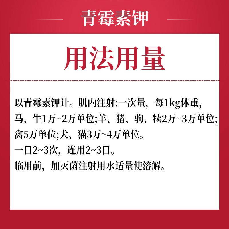 - 商品名称:【吉博士】400万单位注射用青霉素钾2.5g*20支兽药国标可追溯链霉素合用 猪牛羊马犬可用孕畜可用