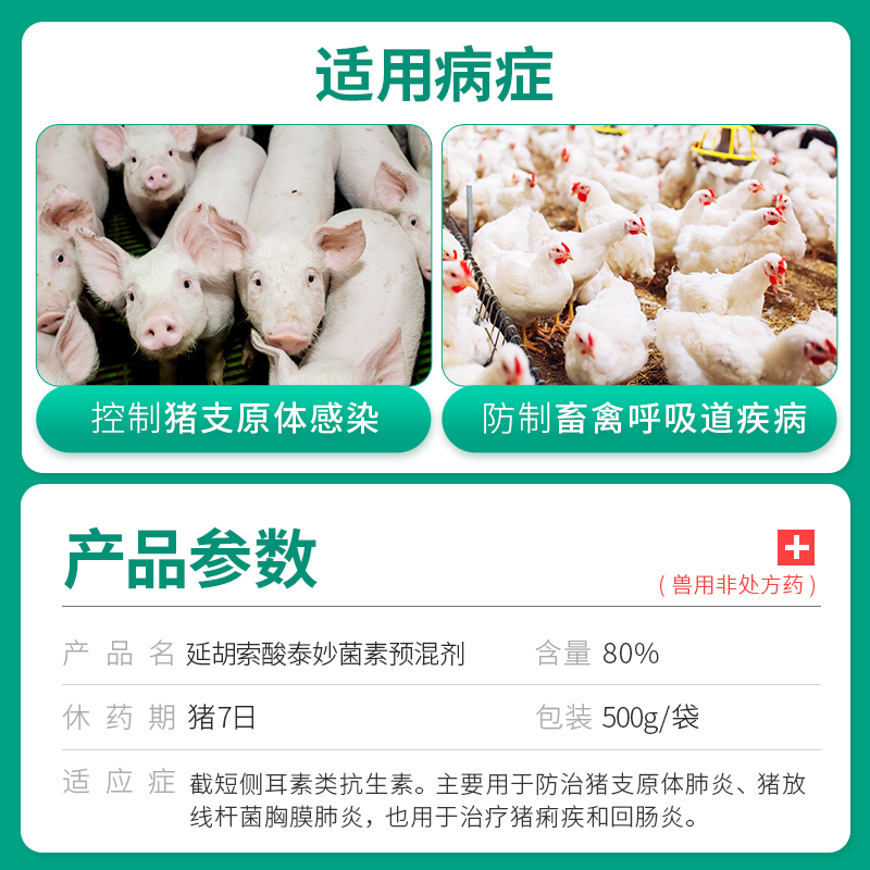 - 主要成分:延胡索酸泰妙菌素预混剂