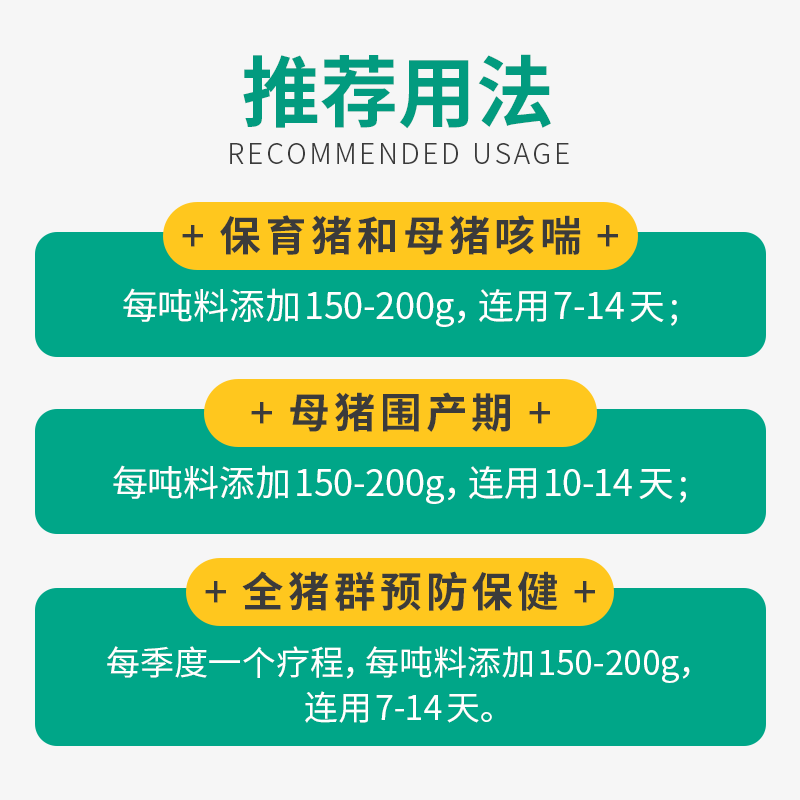 - 使用方法:拌料或饮水,连用7-14天