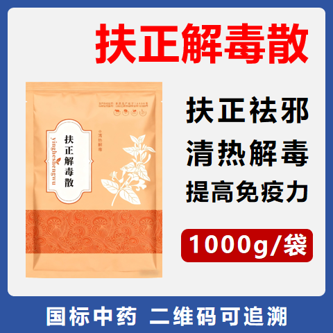 商品名称:【华农利邦】扶正解毒散1000g 清热解毒 扶正祛邪 提高免疫力 商品编号:S88 品牌:华农利邦 上架时间:2025-12-22 商品净重:1.000千克 主要成分:板蓝根、黄芪、淫羊藿。 产品批文号:兽药字164005076
