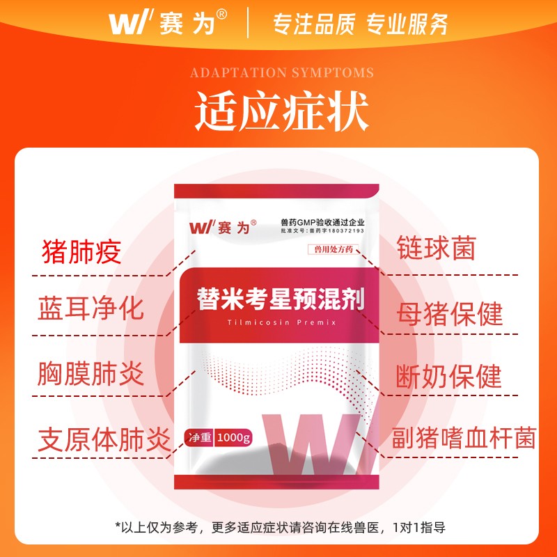 - 商品名称:【赛为】20%包被替米考星预混剂1000g蓝耳净化呼吸道疾病