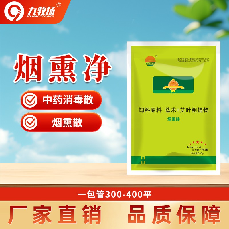 商品名称:【九牧扬】烟熏静500g/袋 烟熏静 烟熏散养殖场猪场烟熏消毒散 商品编号:ZHUEJPH0009818759 品牌:九牧扬 上架时间:2026-01-07 商品净重:500克 产品批文号:豫饲添(2024)H10166