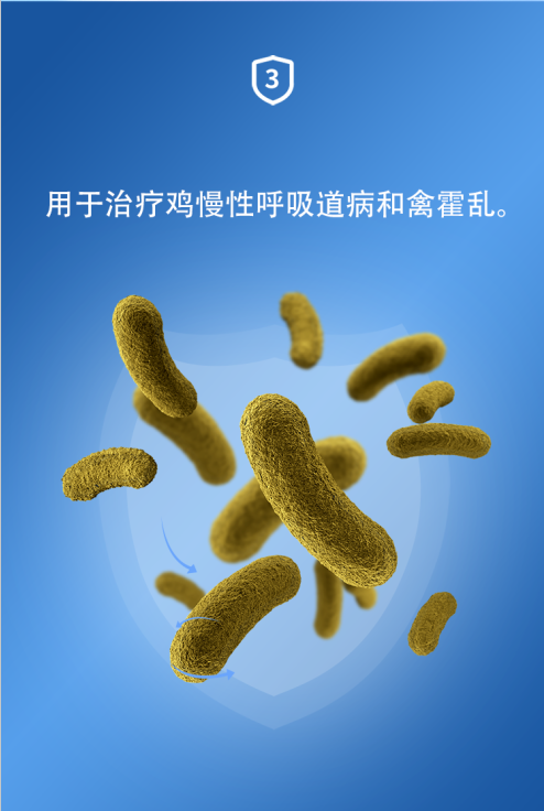 - 使用方法:涽饮:每1L水,鸡0.75ml。连用3日