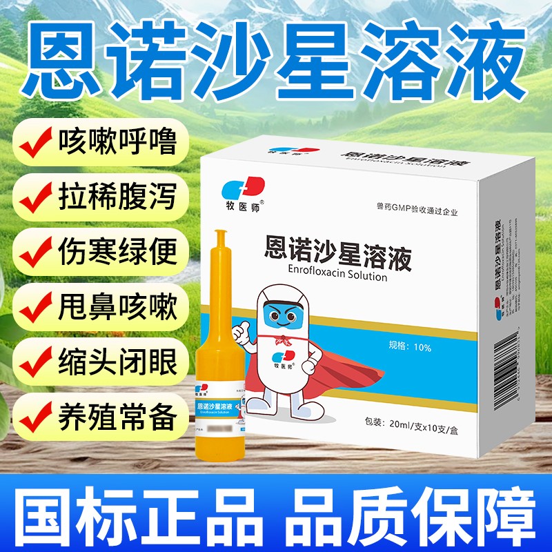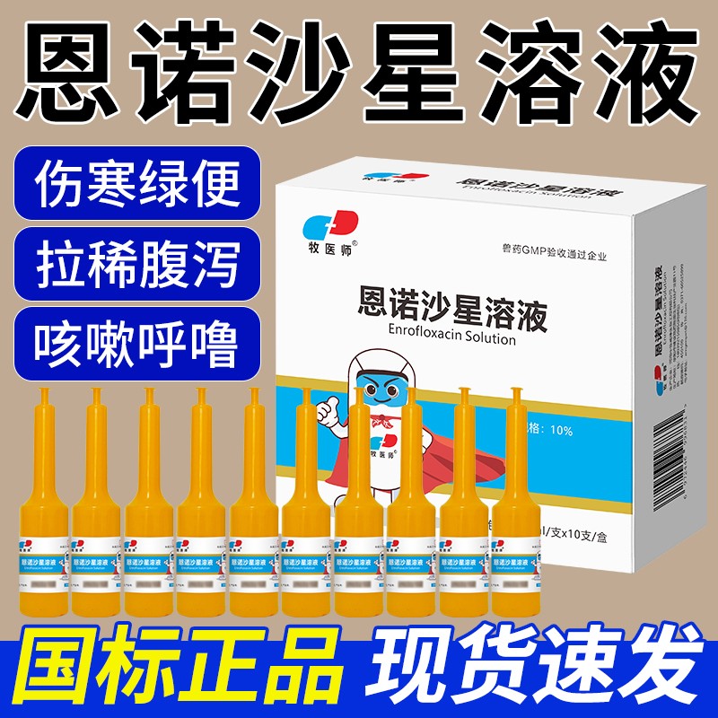 商品名称:恩诺沙星溶液鸡鸭鹅鸽子抗菌消炎20ml*10支 商品编号:ZHUEJPH0004718775 品牌:牧医师 上架时间:2026-01-27 商品净重:20.000千克 产品批文号:兽药字161311298