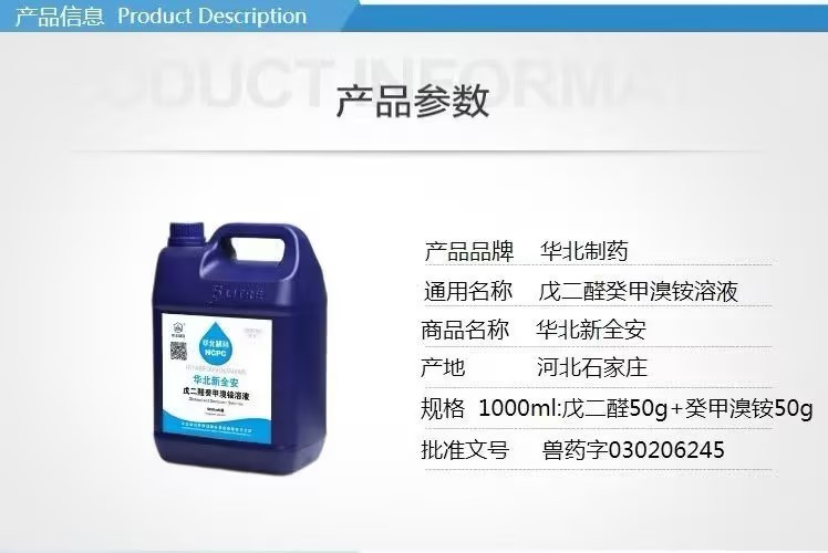 商品名称:华北制药消醛安消毒剂5L/桶*4/件 戊二醛高效消毒剂 消毒防腐口蹄疫预防 商品编号:ZHUEJPH0008518808 品牌:华北制药 上架时间:2026-04-03 商品净重:20.000千克 产品批文号:兽药字030202582