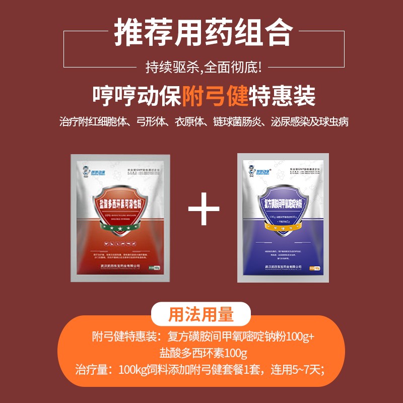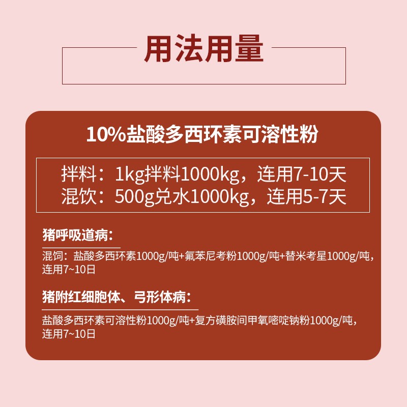 - 商品名称:【哼哼动保】10%盐酸多西环素可溶性粉 主治猪附红细胞体、弓形体、衣原体、钩端螺旋、支原体等疾病!