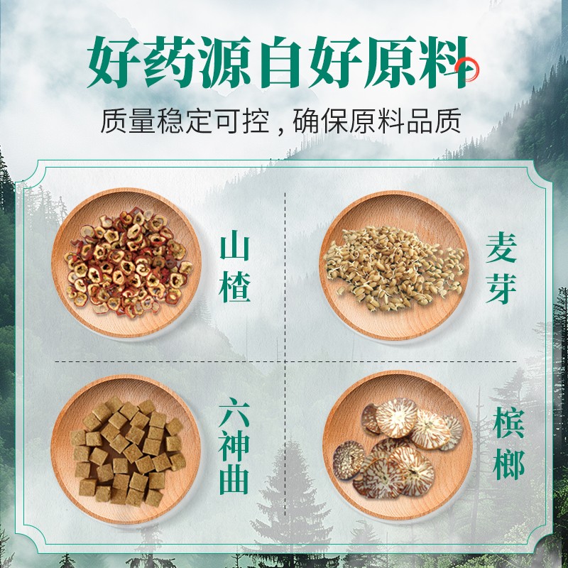 - 主要成分:山楂、麦芽、六神曲、槟榔