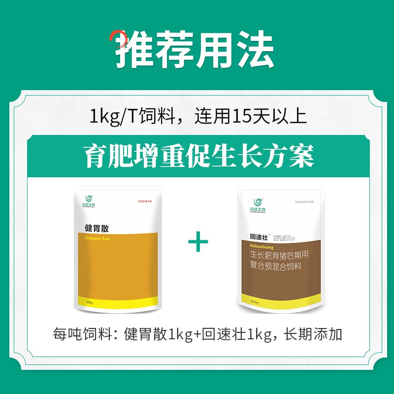 - 商品名称:【回盛生物】健胃散500g 开胃消食增食复食催肥促生长 改善肠道消化不良 提高采食量中药兽药