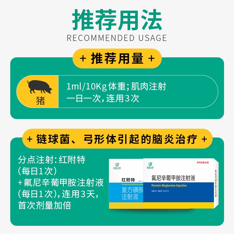 - 商品名称:【回盛生物】红附特 复方磺胺间甲氧嘧啶钠注射液50ml 治疗链球菌脑炎副猪弓形体